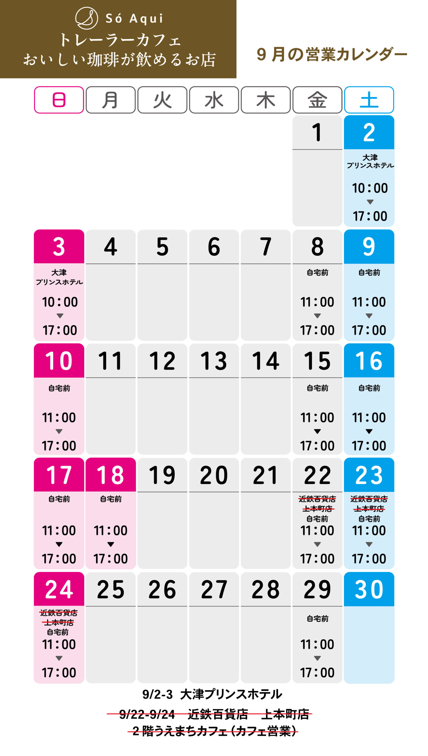 9/22-9/24は諸事情により近鉄百貨店 上本町店での営業を行わず