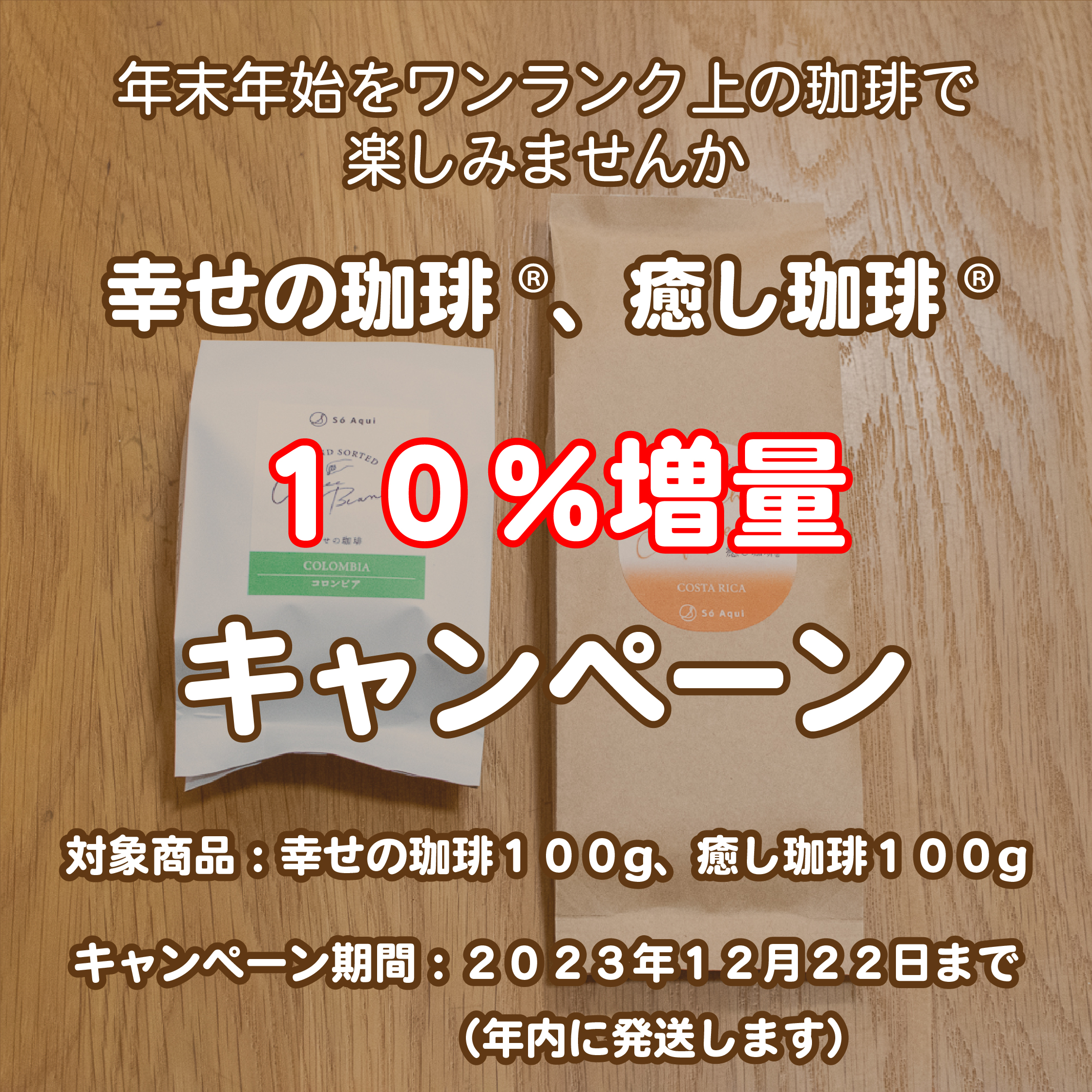 幸せの珈琲®︎、癒し珈琲®︎ 100g 10%増量キャンペーン中