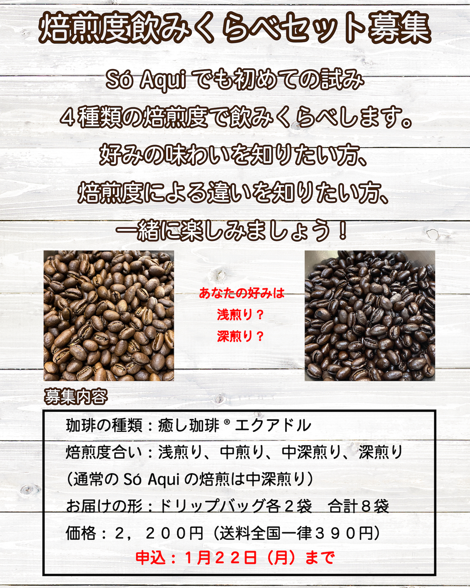 ・焙煎度:浅煎り、中煎り、中深煎り、深煎り(4種類)