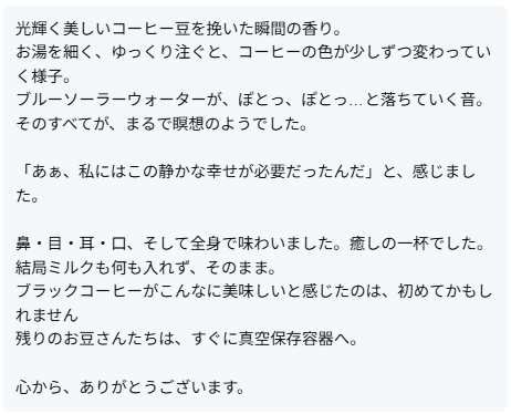 Só Aquiの珈琲をご購入いただきましたお客様から、頂戴したご感想の一部を紹介します。